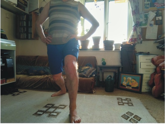 4itb4ward middle and quadput the back foot on a feature and dip the front knee to feel massive relief and give if you have legs like mine