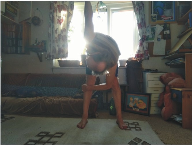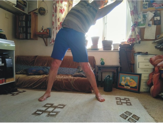 14sides hips and through legs to shouldersrelax doing this to gain a stretch by holding it if like me usually not going too far easily. The arms stretching reveals successful release of the midsection